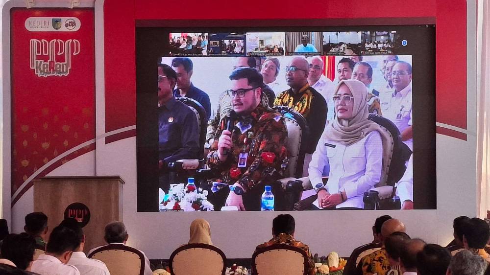 Bupati Kediri, Hanindhito Himawan Pramana dan Wakil Bupati Kediri, Dewi Mariya Ulfa (tengah) saat mengikuti peresmian MPP secara daring (zoom), melalui MPP Kabupaten Kediri, Rabu (24/9/2025).
