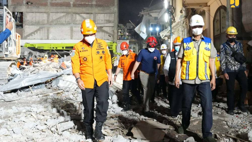Selain itu, satu unit mobile crane juga disiagakan untuk mempercepat proses pembersihan material reruntuhan. Sebanyak 34 personel lapangan diterjunkan ke lokasi, terdiri dari operator, pengemudi, tenaga kerja, pelaksana, serta koordinator Tim Reaksi Cepat (TRC) Kementerian PU.