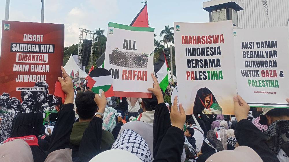 Aksi damai yang berlangsung tertib ini menjadi cerminan dukungan kuat masyarakat Indonesia terhadap perjuangan kemerdekaan Palestina. (CRI)