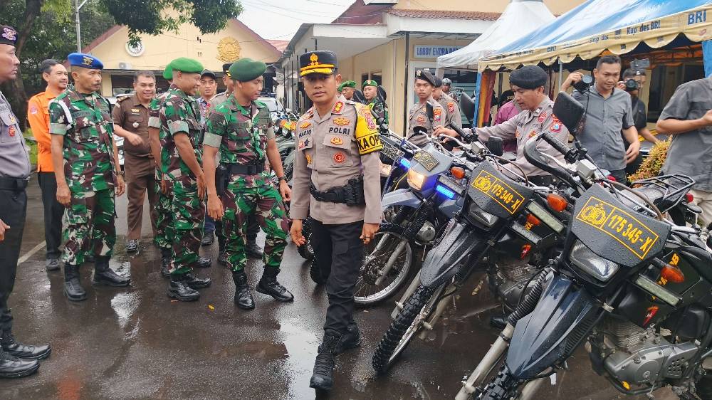 Kapolres Bondowoso AKBP Harto Agung Cahyono Tengah Mengecek Kesiapan Armada Guna Pengamanan Nataru