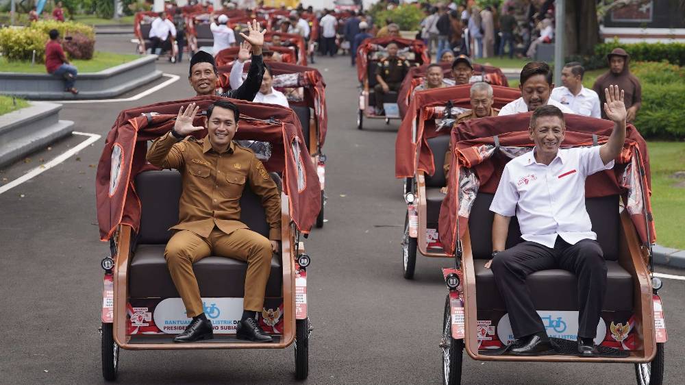 Presiden Prabowo Salurkan 100 Becak Listrik untuk Tukang Becak Tuban
