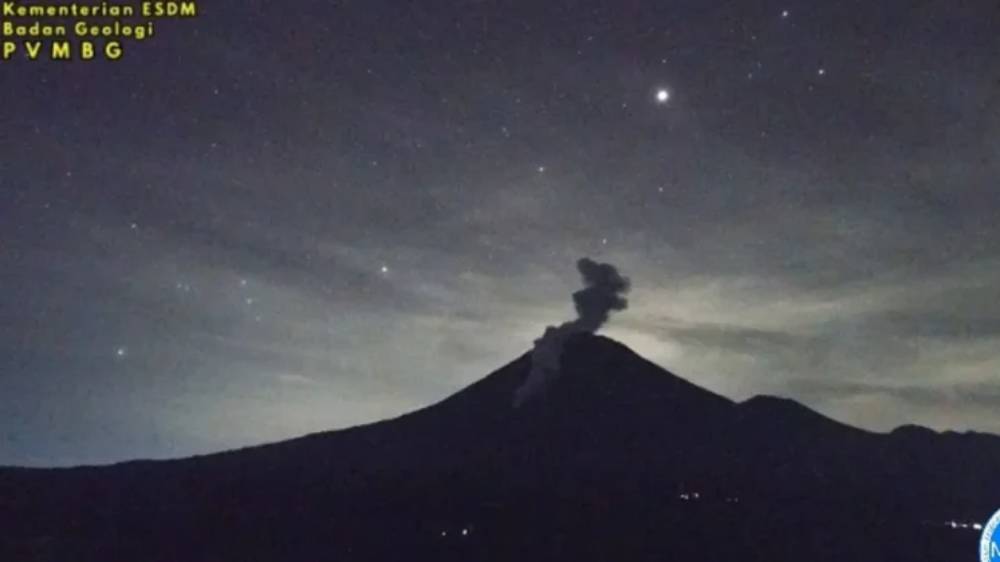“Kolom abu teramati berwarna putih hingga kelabu dengan intensitas tebal ke arah barat laut. Erupsi terekam di seismograf dengan amplitudo maksimum 22 mm dan durasi 241 detik,” ujarnya.